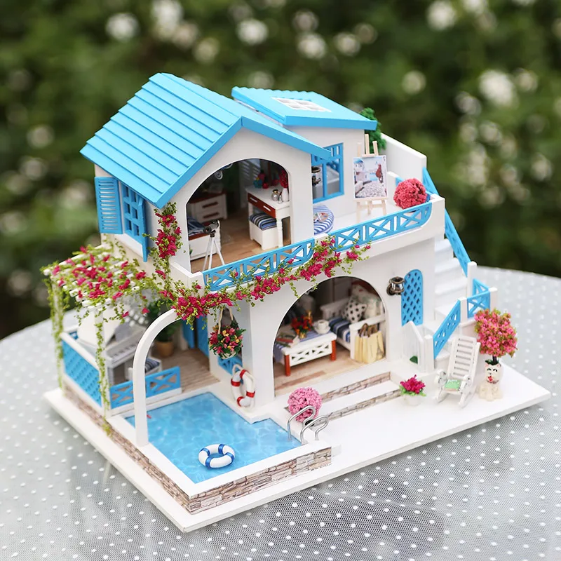 Get a 53% discount for Doll House Diy Furniture with Swimming Pool Girl's Toys for Children Dollhouse Miniatures Home Toy